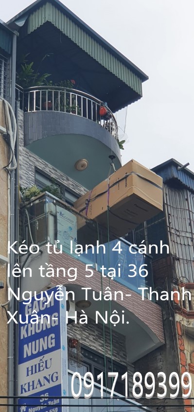 Kéo tủ lạnh 600L lên tầng 5 tại 36 Nguyễn Tuân- Thanh Xuân- Hà Nội